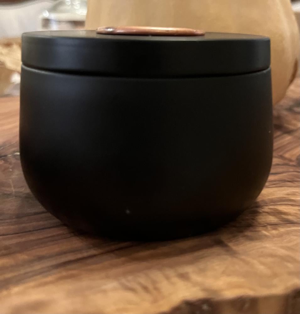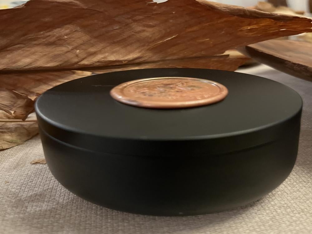 شمعة بوعاء معدني تعكس اجواء الخريف