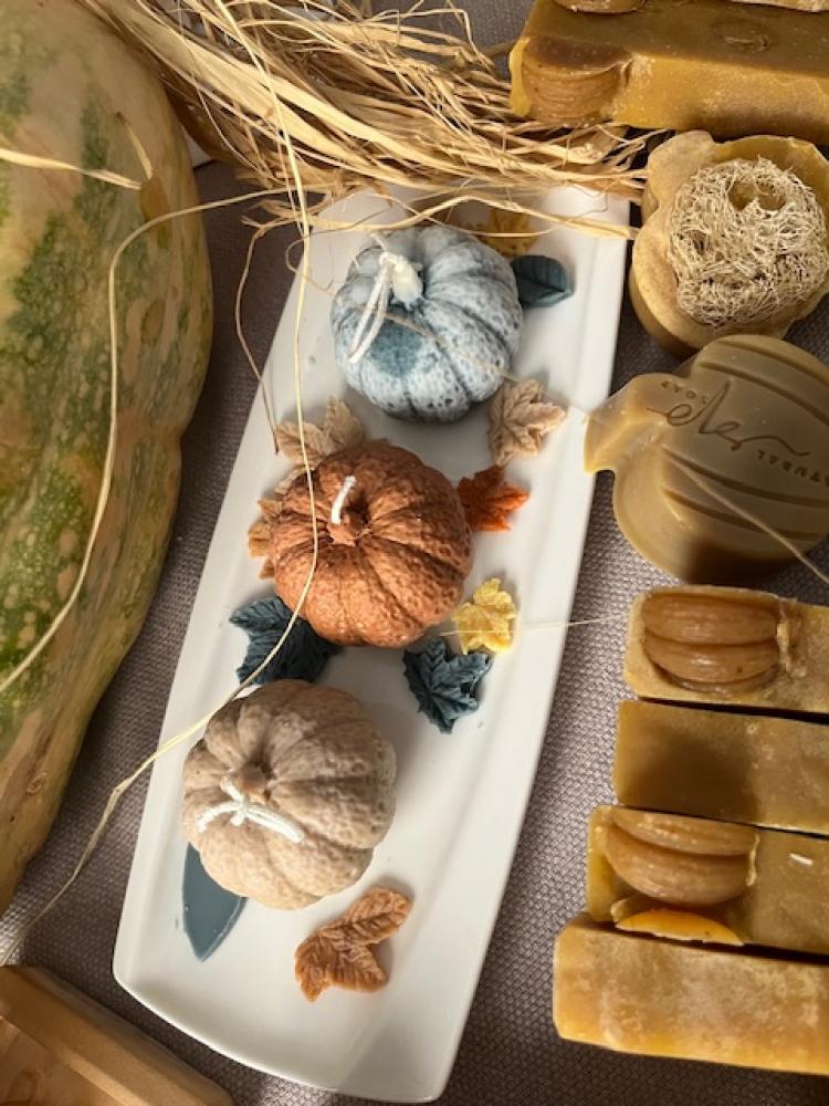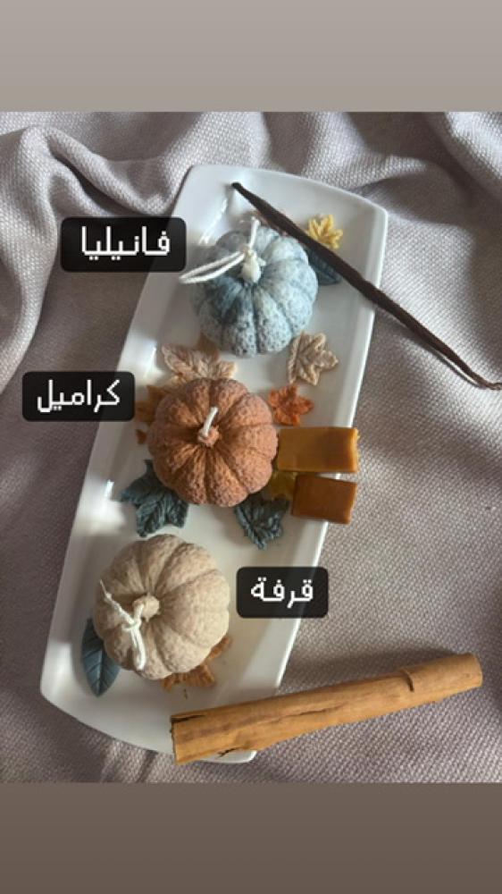 3شموع بروائح الخريف الدافئ (القرفة، الفانليا،الصندل، باترسكوتش ،) مع صحن من السيراميك 🍁🍁