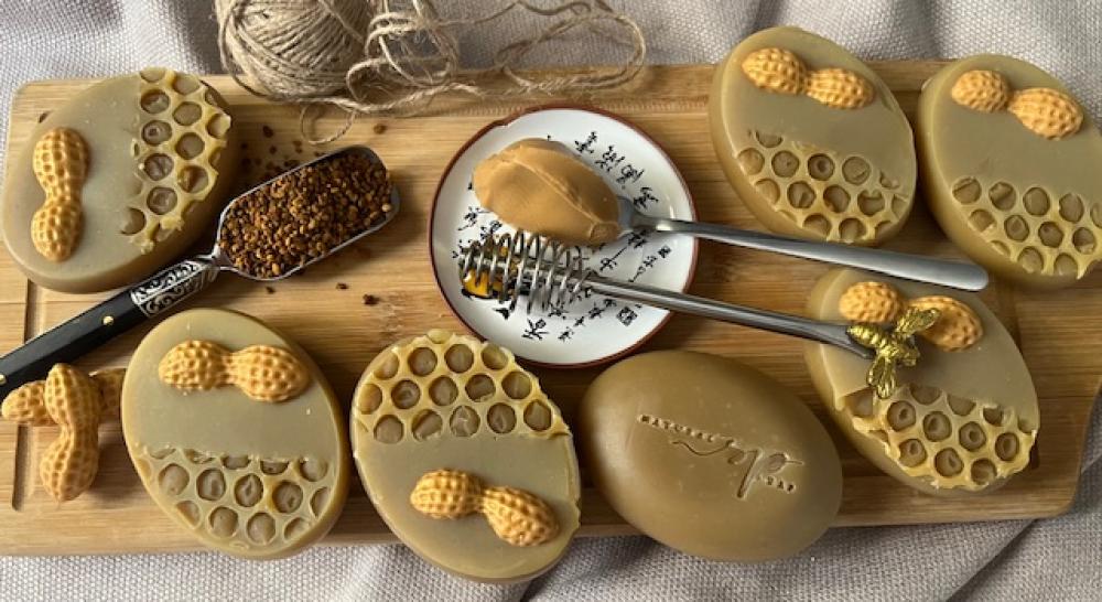 صابون بزبدة الفول السوداني والعسل وحبوب اللقاح