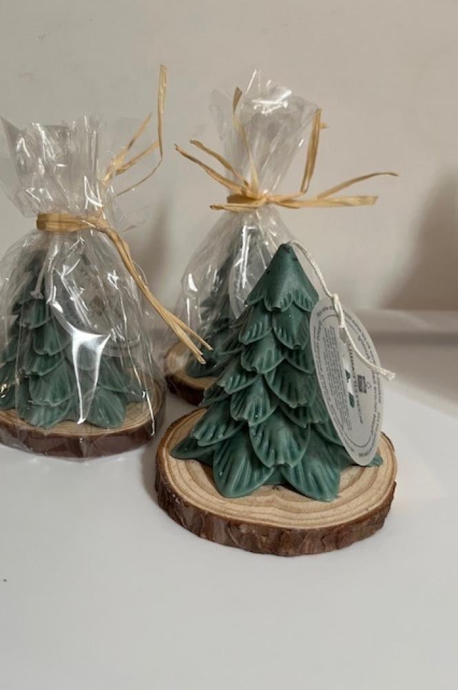 شمعة شجرة الصنوبر برائحة ورق الشجر مكونة من شمع الصويا وشمع النحل على قاعدة خشبية جميلة🌲